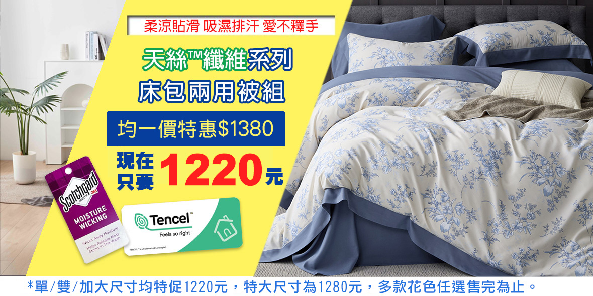 天絲™纖維床包兩用被組 單人$1469 雙人$1529 加大$1599