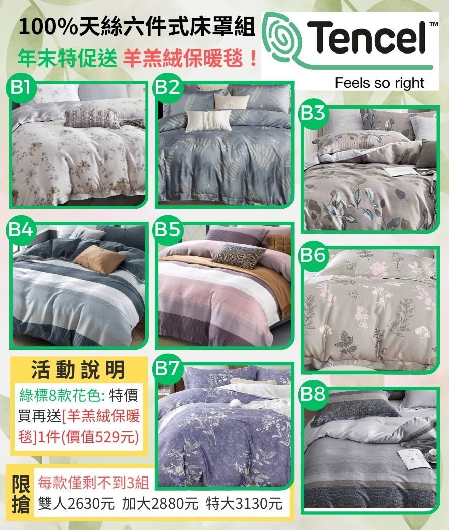 (1)天絲是公認最好的床寢材質,不僅吸濕、透氣、親膚的特性卓越,
